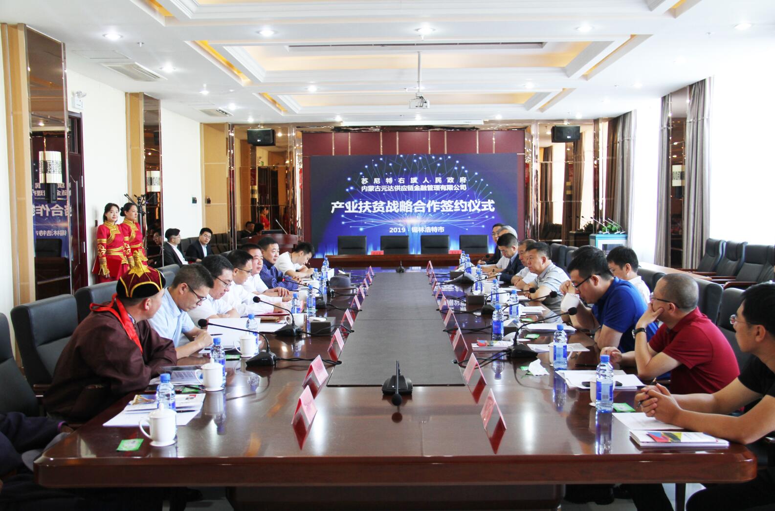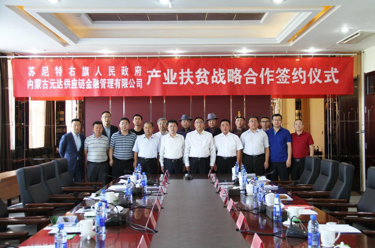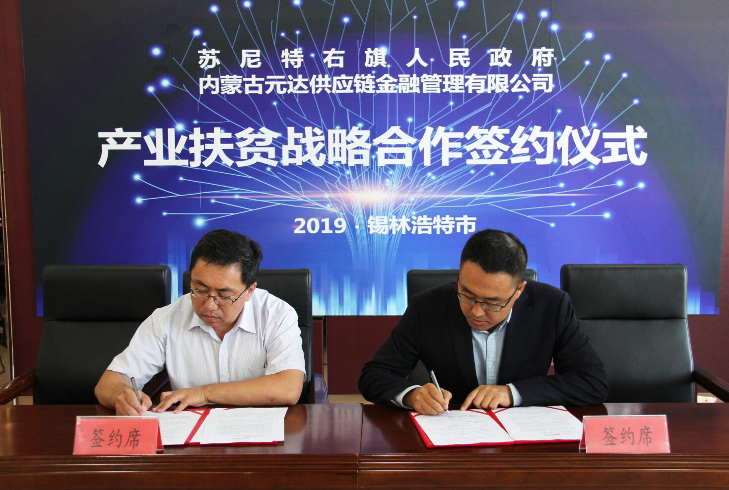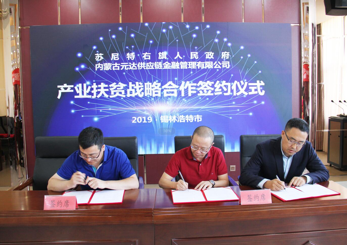 2019年9月2日,內(nèi)蒙古農(nóng)牧業(yè)產(chǎn)業(yè)化龍頭企業(yè)協(xié)會(huì)會(huì)員單位、內(nèi)蒙古元達(dá)供應(yīng)鏈金融管理有限公司與蘇尼特右旗人民政府產(chǎn)業(yè)扶貧戰(zhàn)略合作簽約儀式在錫林浩特市成功舉行。