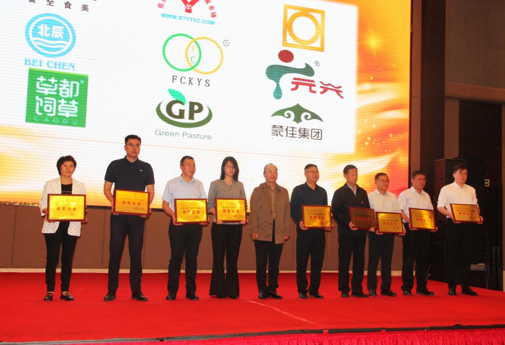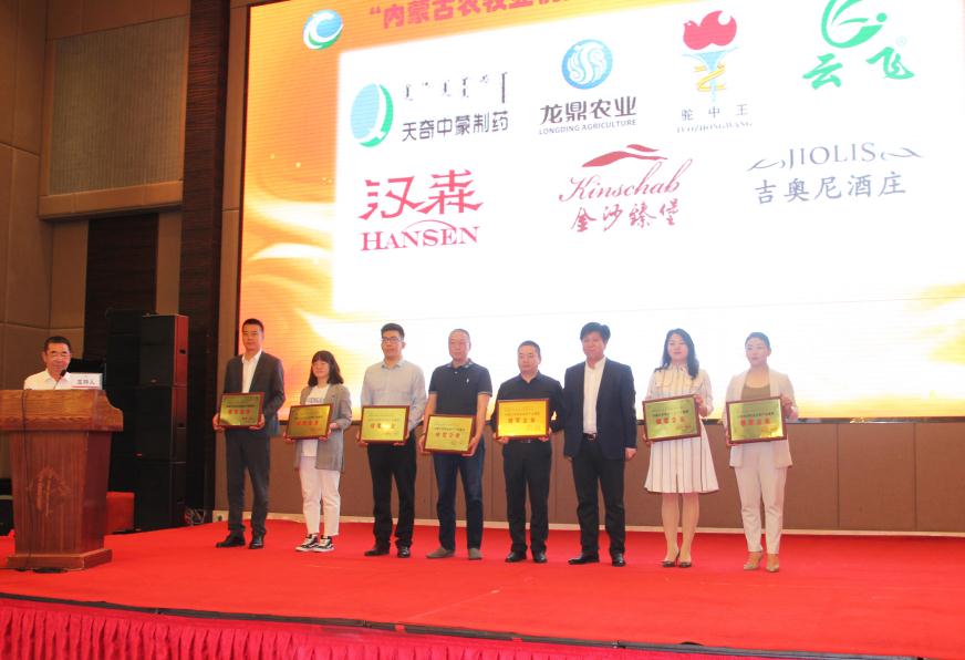 內蒙古自治區(qū)農牧廳總農藝師劉永明為獲獎企業(yè)頒獎