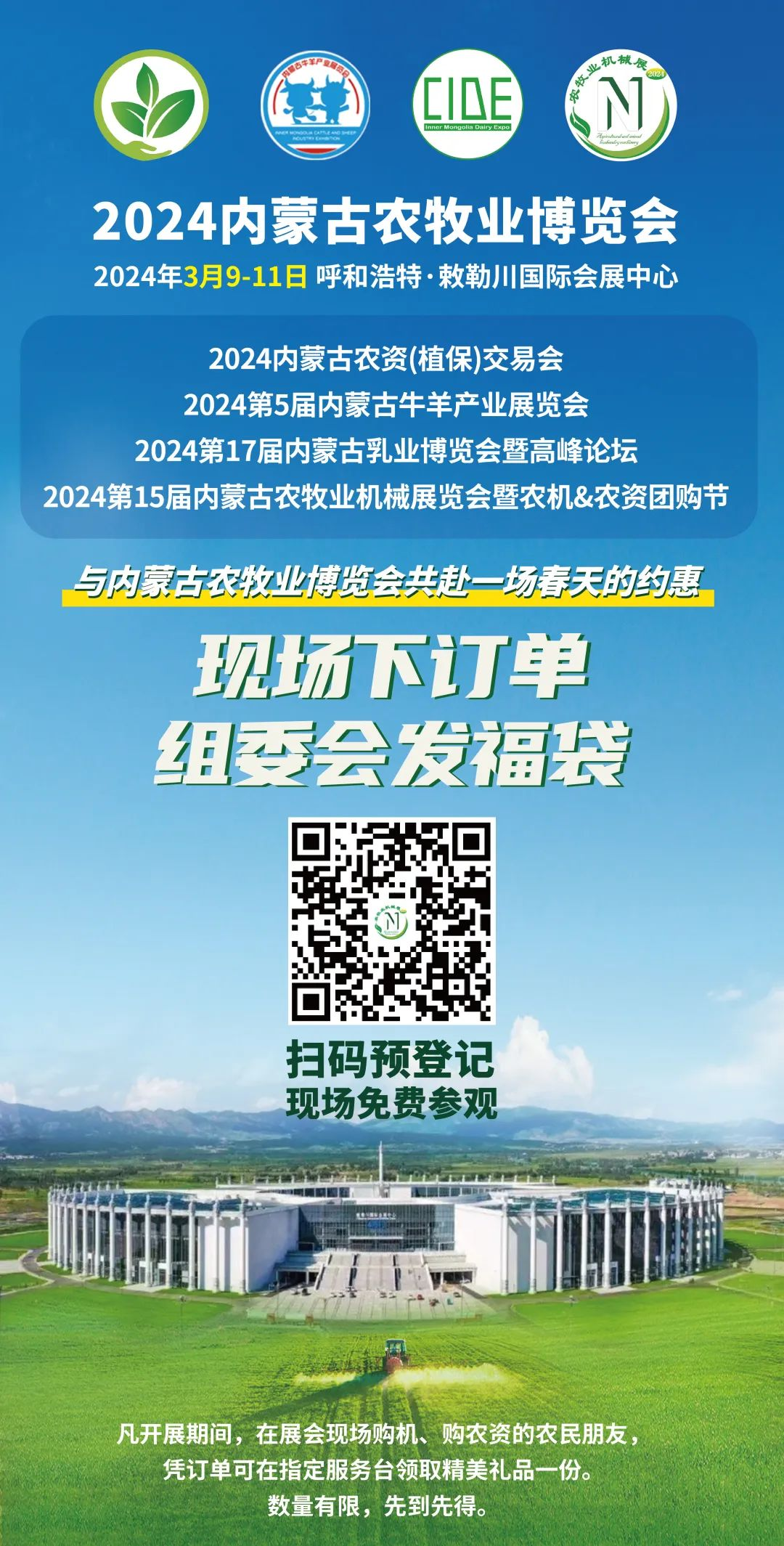 本次展會(huì)由艾克思博國(guó)際會(huì)展集團(tuán),內(nèi)蒙古農(nóng)牧業(yè)產(chǎn)業(yè)化龍頭企業(yè)協(xié)會(huì)、上海博朝展覽服務(wù)有限公司聯(lián)合舉辦,大會(huì)同期還將舉辦2024內(nèi)蒙古農(nóng)牧業(yè)博覽會(huì)、2024第17屆內(nèi)蒙古乳業(yè)博覽會(huì)暨高峰論壇、2024第5屆內(nèi)蒙古牛羊產(chǎn)業(yè)展覽會(huì)、2024內(nèi)蒙古農(nóng)資(植保)交易會(huì),今年展會(huì)整體規(guī)模更大、產(chǎn)品更加豐富,展品從農(nóng)機(jī)裝備、牛羊養(yǎng)殖、乳品工業(yè)、農(nóng)資植保乃至品牌終端,覆蓋農(nóng)牧業(yè)全產(chǎn)業(yè)鏈高端人脈,充分滿足農(nóng)牧民朋友的采購(gòu)需求。如您有一站式采購(gòu)需求,請(qǐng)一定不要錯(cuò)過本場(chǎng)行業(yè)盛會(huì)。