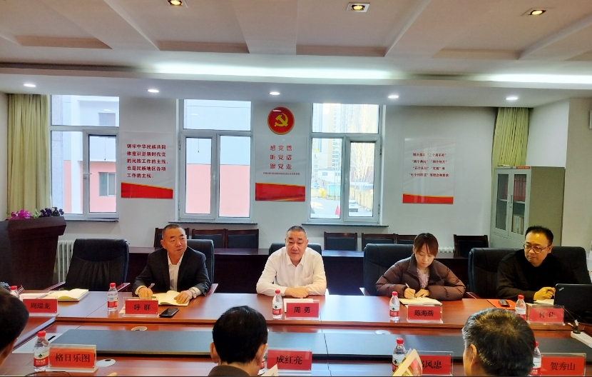 20241226日下午,中共內(nèi)蒙古自治區(qū)委員會(huì)社會(huì)工作部副部長(zhǎng)成紅亮,處長(zhǎng)格日樂(lè)圖、自治區(qū)農(nóng)牧廳二級(jí)巡視員、人事處處長(zhǎng)鄭風(fēng)忠,副處長(zhǎng)賀秀山等一行6來(lái)協(xié)會(huì)調(diào)研指導(dǎo)工作,協(xié)會(huì)會(huì)長(zhǎng)周勇出席會(huì)議,會(huì)議由協(xié)會(huì)秘書長(zhǎng)呼群主持。