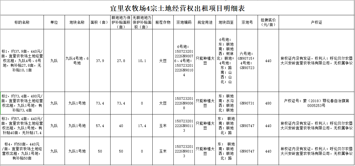 4宗耕地經(jīng)營權(quán)出租項目
