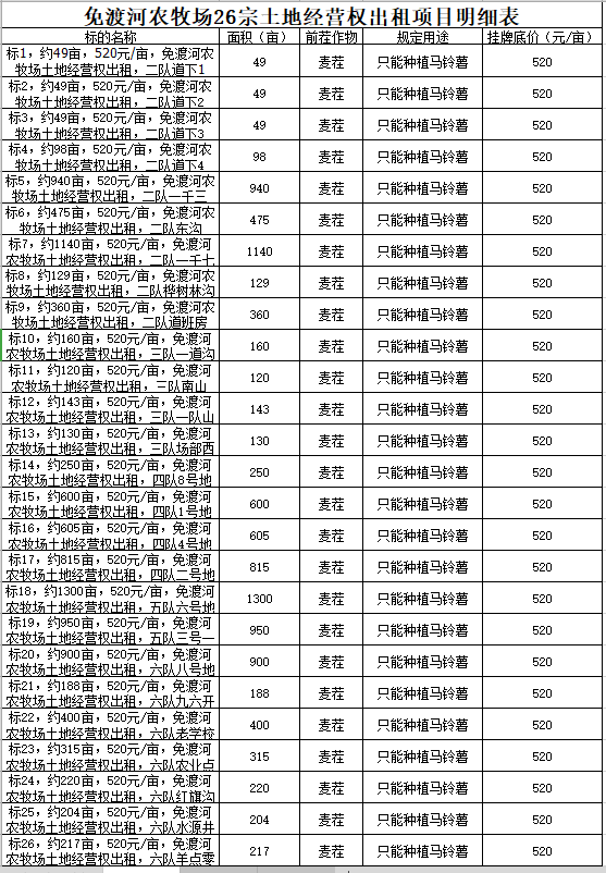 7.掛牌價:見明細表(掛牌價為每畝耕地應(yīng)當支付的租賃底價)