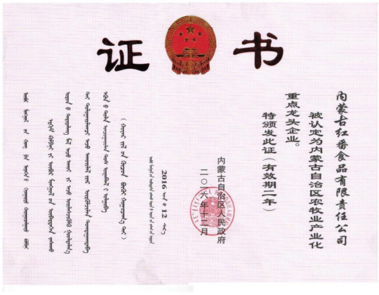 內(nèi)蒙古紅番生物科技有限公司注冊資金2500萬元。是中國國際合作促進會的常務(wù)理事單位。成立后收購了內(nèi)蒙古紅番食品有限責(zé)任公司。擁有紅番、中番和番美滋三個知名番茄品牌商標。在全球第一個提出了番茄制品能改善人類體質(zhì)的論點。提出一個產(chǎn)業(yè)兩個中心的發(fā)展方針,即立足內(nèi)蒙古作為番茄產(chǎn)業(yè)資源基地的產(chǎn)業(yè)優(yōu)勢,建設(shè)番茄產(chǎn)業(yè)的研發(fā)中心...