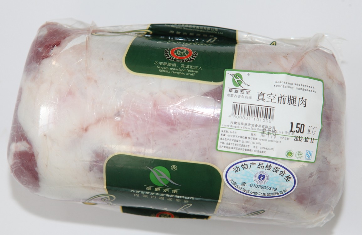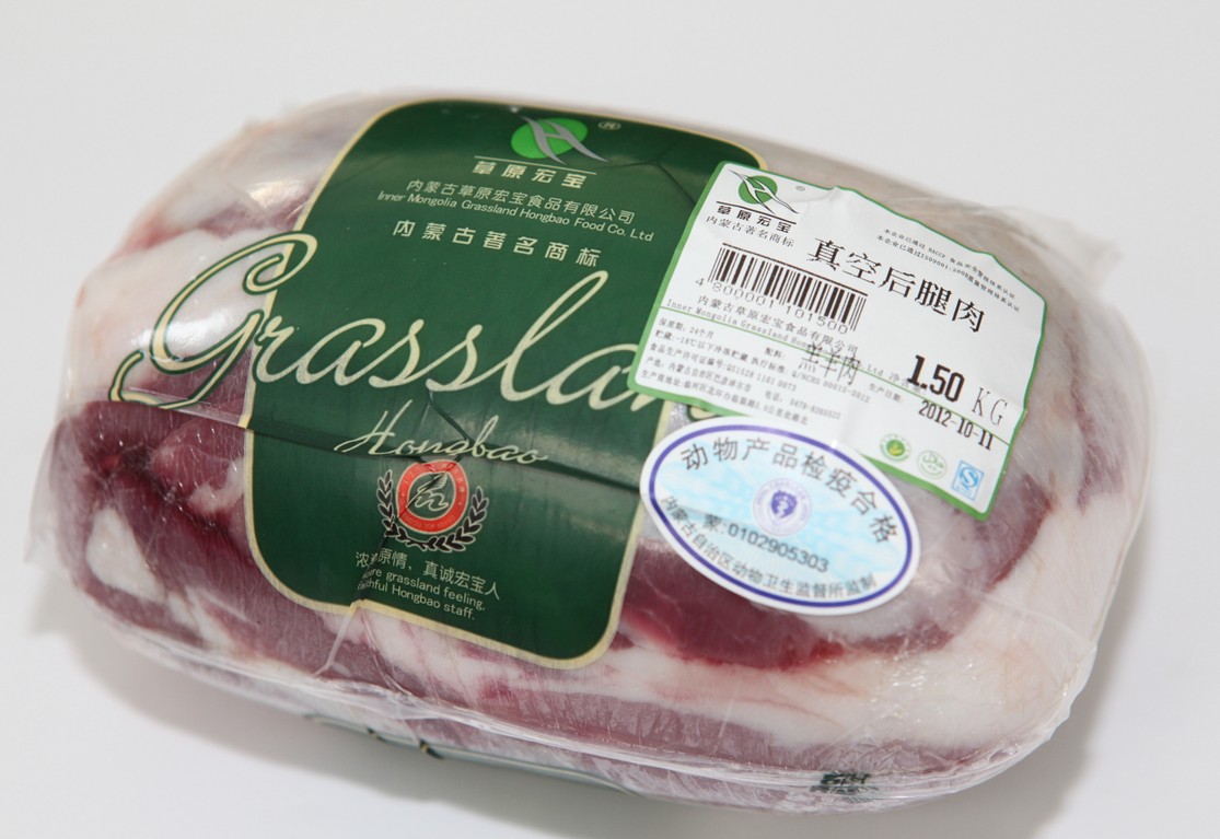 “草原宏寶”牌羊肉系列產品,從牧場養(yǎng)殖、屠宰分割到儲運物流、商品貿易全產業(yè)鏈、全過程參照國家《良好農業(yè)規(guī)范》及相關工廠、物流審核標準的要求實施可追溯控制生產,確保安全無污染。所生產的原料全部選用牧場的優(yōu)質羔羊,采用伊斯蘭教屠宰方式進行吊宰,經冷卻排酸、精細分割修選加工而成,被國家農業(yè)部農產品質量安全中心認證為“無公害食品”。