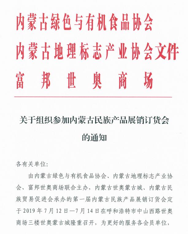關于組織參加內蒙古民族產品展銷訂貨會的通知