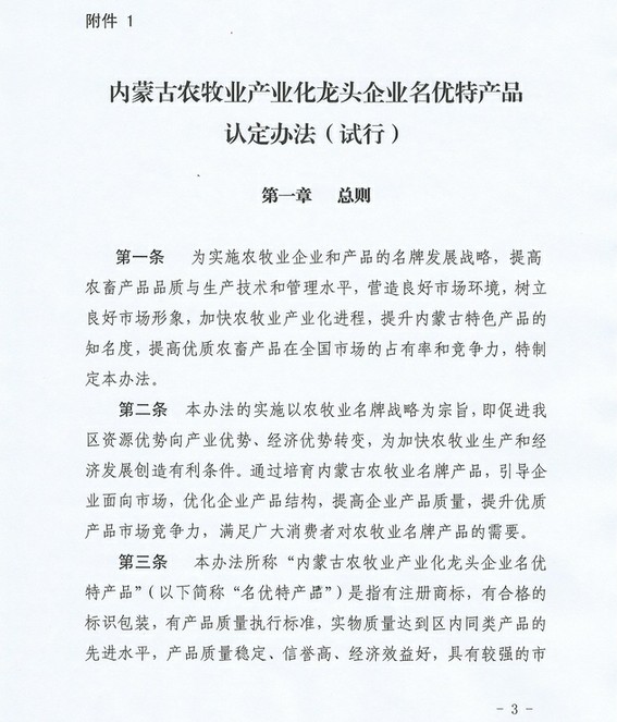 關(guān)于印發(fā)《內(nèi)蒙古農(nóng)牧業(yè)產(chǎn)業(yè)化龍頭企業(yè)名優(yōu)特產(chǎn)品認定辦法》的通知