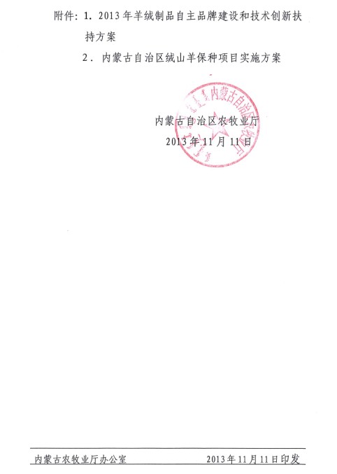 關于申報2013年羊絨產(chǎn)業(yè)發(fā)展專項資金項目的通知