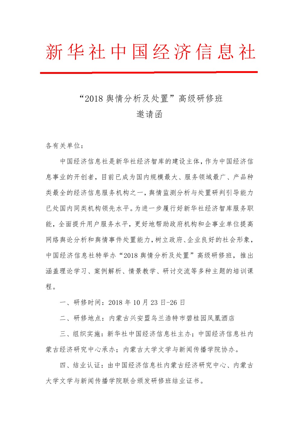 “2018輿情分析及處置”高級(jí)研修班邀請(qǐng)函