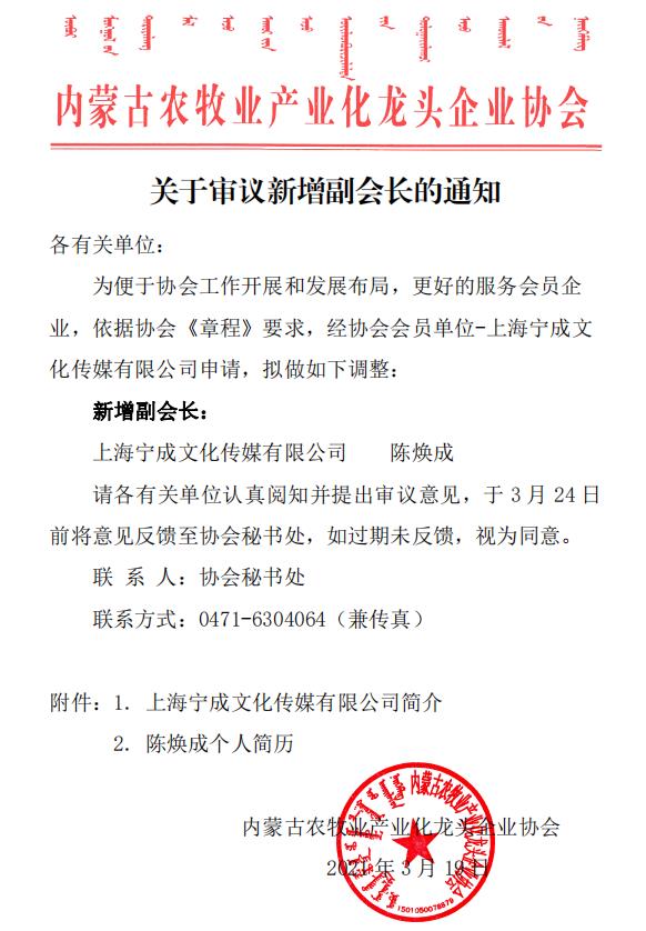 關(guān)于審議新增副會長的通知