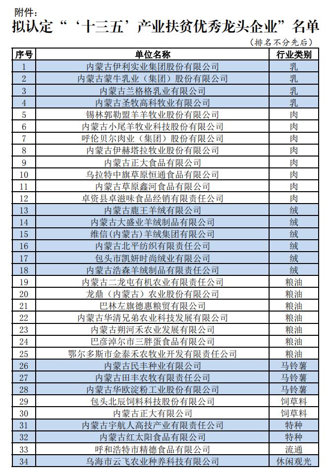 關(guān)于“‘十三五’產(chǎn)業(yè)扶貧優(yōu)秀龍頭企業(yè)”認(rèn)定結(jié)果的公示