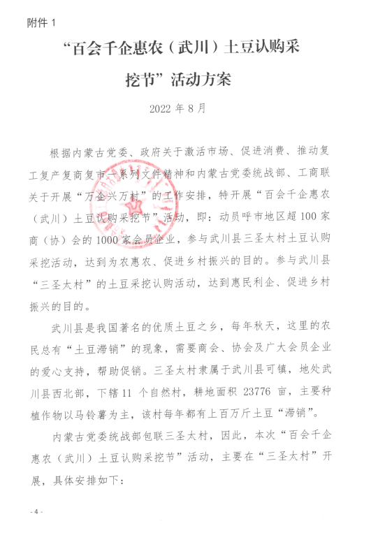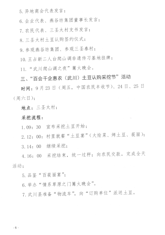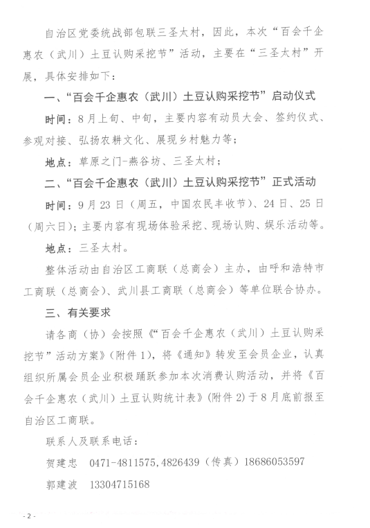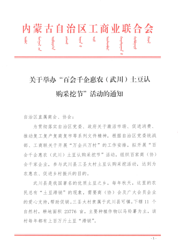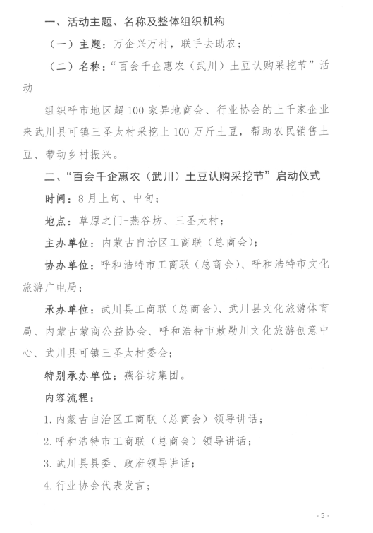 關(guān)于舉辦“百會千企惠農(nóng)(武川)土豆認購采挖節(jié)”活動的通知