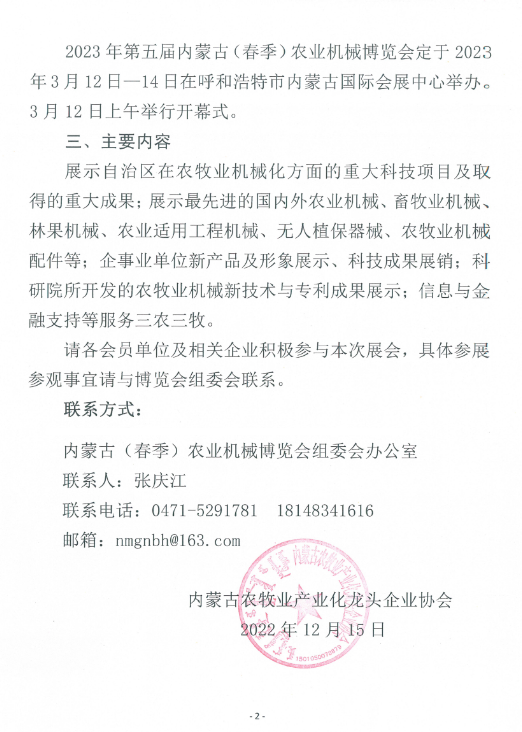 關(guān)于組織參加2023年第五屆內(nèi)蒙古(春季)農(nóng)業(yè)機(jī)械博覽會的通知