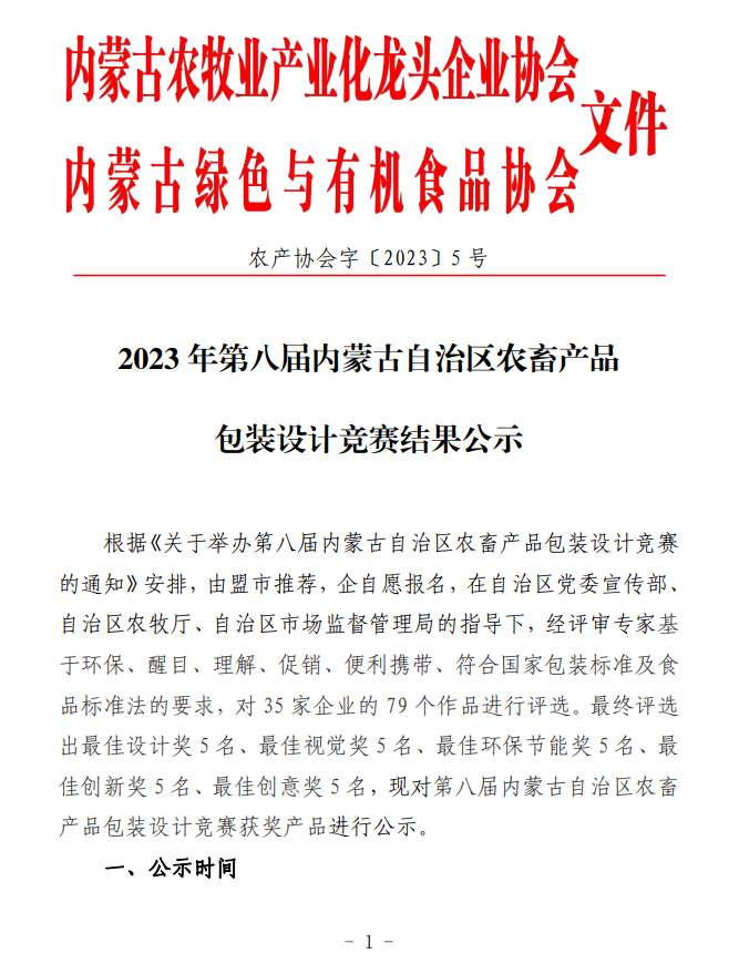 2023年第八屆內(nèi)蒙古自治區(qū)農(nóng)畜產(chǎn)品包裝設(shè)計競賽結(jié)果公示